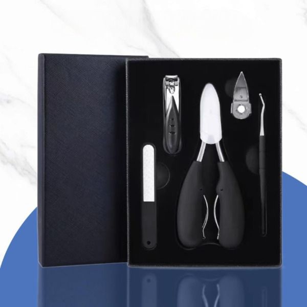 Īpaši izstrādāts biezajiem un ieaugušajiem nagiem, šī komplekta instrumenti nodrošina nepieciešamo spēku un precizitāti grūtiem nagu kopšanas darbiem bez diskomforta vai traumu riska.