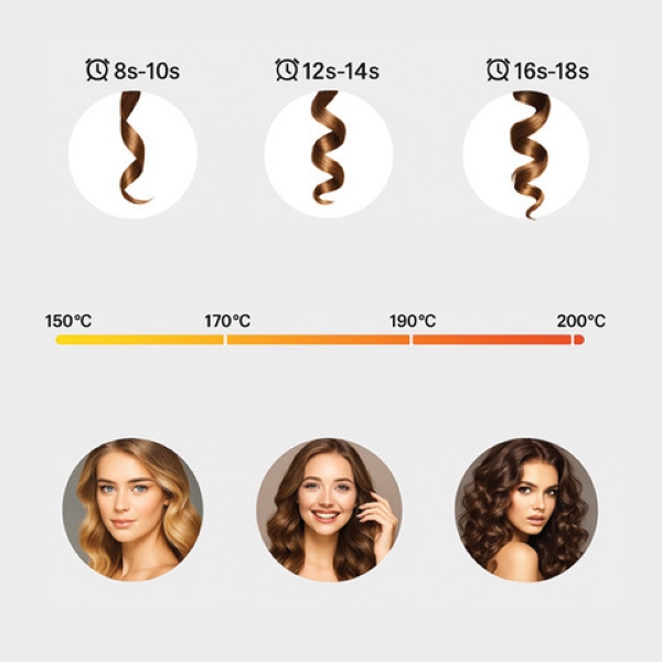 Neatkarīgi no tā, vai jums ir smalki, biezi vai viļņaini mati—CURLBLISS nodrošina optimālu siltumu, lai jūsu mati būtu veseli un skaisti. Pielāgojiet siltuma iestatījumus savam matu tipam, lai iegūtu perfektus rezultātus.