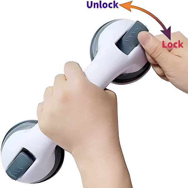 Šis drošības rokturis sniedz lielāku pārliecību ikdienas mazgāšanās laikā, nodrošinot stabilu satvērienu tieši tad, kad tas visvairāk nepieciešams. Spēcīgās vakuuma piesūcekņi stingri pieķeras gludām virsmām, ļaujot rokturi ātri piestiprināt bez instrumentiem.