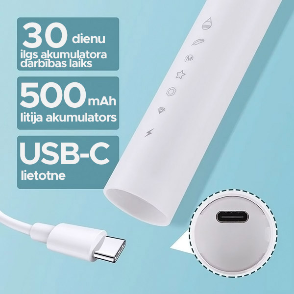 🦷 Iespēja iegādāties rezerves uzgaļus ilgākai lietošanai un pilnīgai higiēnai!
