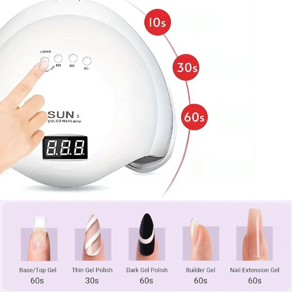 Ar 3 taimeriem (10s, 30s, 60s) jūs varat pielāgot žāvēšanas procesu atbilstoši jūsu gēla tipam un personīgajām vajadzībām. Gudrais sensors automātiski ieslēdzas, kad jūsu rokas vai kājas tiek novietotas zem lampas, nodrošinot bezrūpīgu pieredzi katru reizi.
